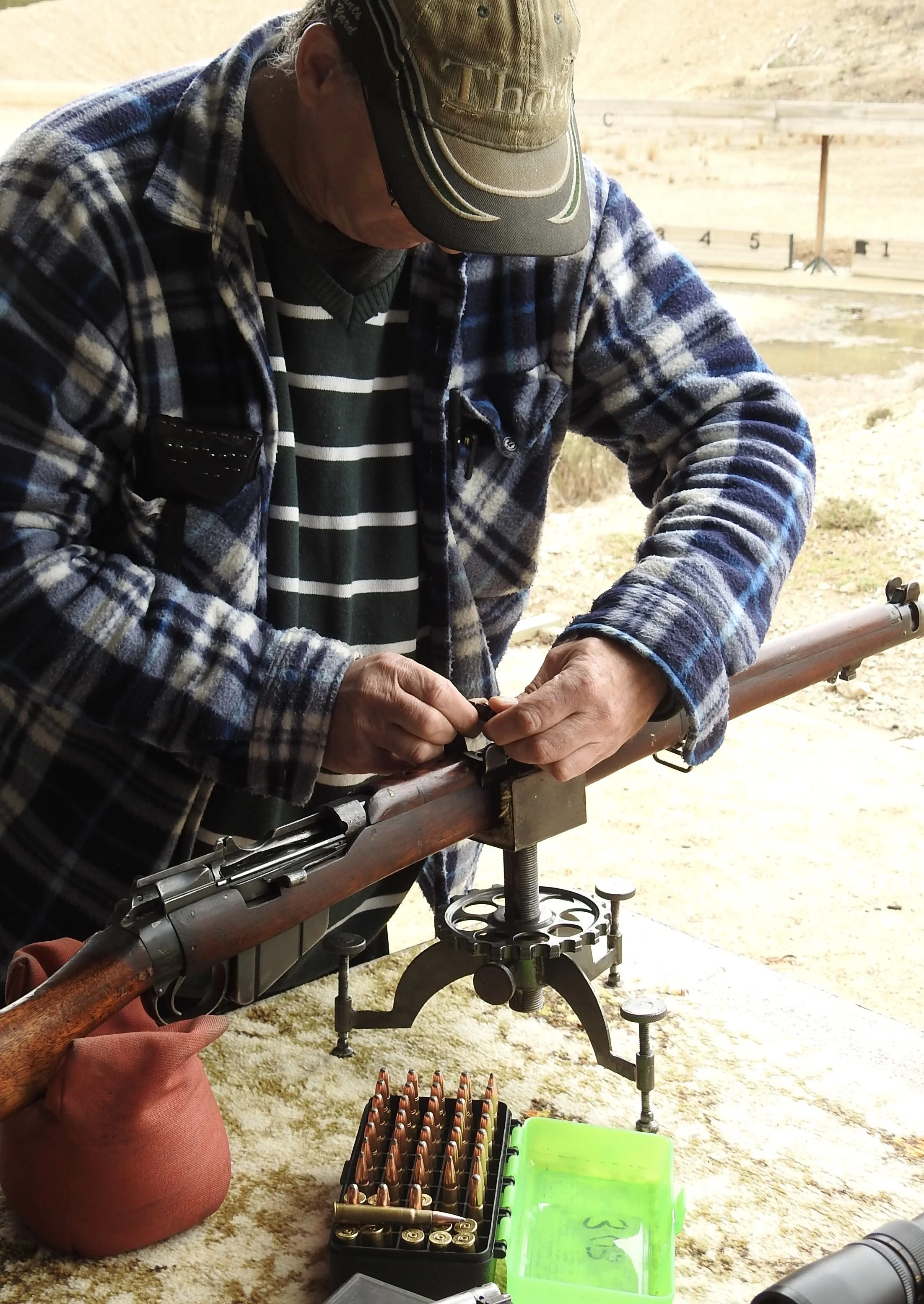 A venerable ex-military rifle getting an open-sight adjustment done, perhaps for a turn-up at our next Service Rifle Match.